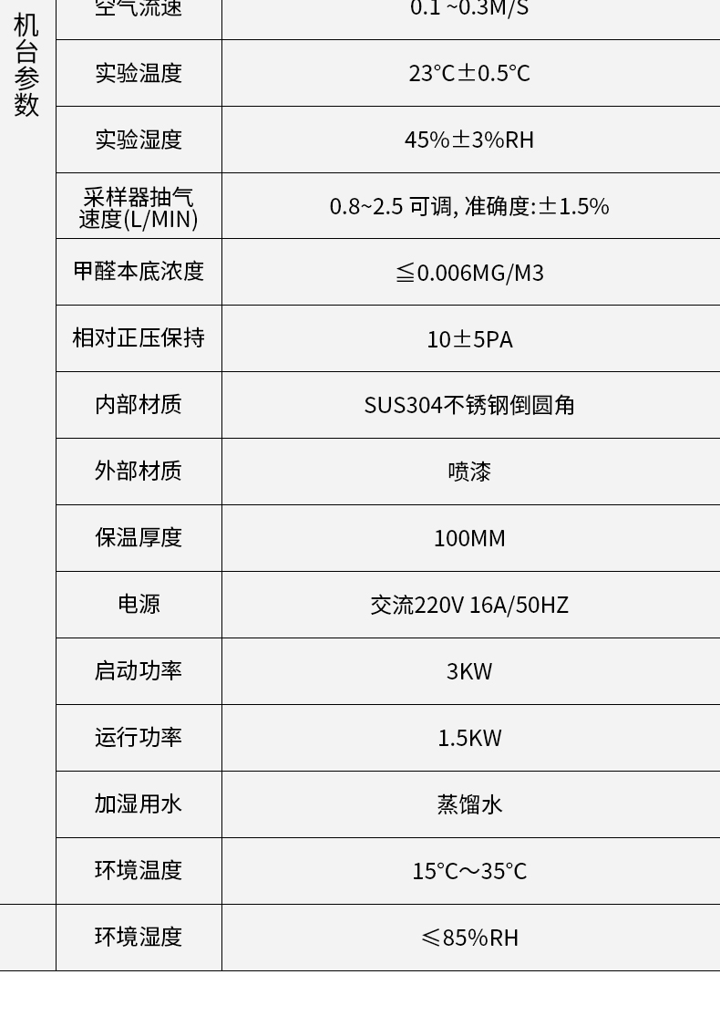三、甲醛釋放量檢測(cè)?氣候箱?產(chǎn)品參數(shù)規(guī)格: